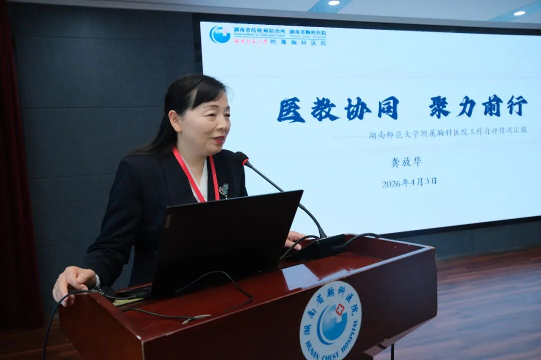 祝益民主任在总结讲话中,对医院近年来的建设发展成效给予充分认可,并强调医院要着力打造三个模范,奋力开创医教研融合发展新局面。一是打造医防融合的模范,立足结核病防治核心主业,聚焦群众健康需求提升防治能力,推动校院合作成为全省乃至全国结核病防治与研究的标杆样板;二是打造点面结合的模范,以附属医院为核心支点、医联体建设为辐射面,统筹发挥专科优势与联动效能,推动优质医疗、教学、科研资源下沉延伸,让校院协同成果惠及更多群众;三是打造院校合作的典范,依托校院两年深耕的合作基础,在现有平台搭建、科研攻关、人才培养等融合成效上,持续深化合作内涵、拓展合作领域,推动校院协同从“深度融合” 向 “高质量融合” 跨越,为健康湖南建设注入强劲医疗教育与科研新动能。
