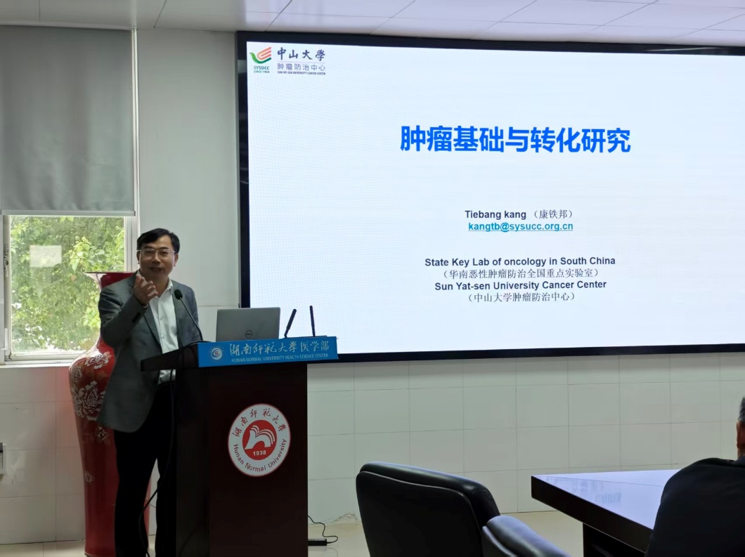 2026年4月23日下午,由伟德国际VICTOR1946、小分子靶向药物研究与创制湖南省重点实验室及伟德国际VICTOR1946青年委员会共同主办的学术报告会在仁医楼207会议室顺利举行。本次报告会特邀中山大学肿瘤防治中心/华南恶性肿瘤防治全国重点实验室副主任、国家杰出青年基金获得者、教育部“长江学者”特聘教授、小分子靶向药物研究与创制湖南省重点实验室学术委员康铁邦教授,作题为“肿瘤基础与转化研究”的精彩报告。伟德国际VICTOR1946相关领导、重点实验室师生及青年科研骨干参加了此次报告会。
