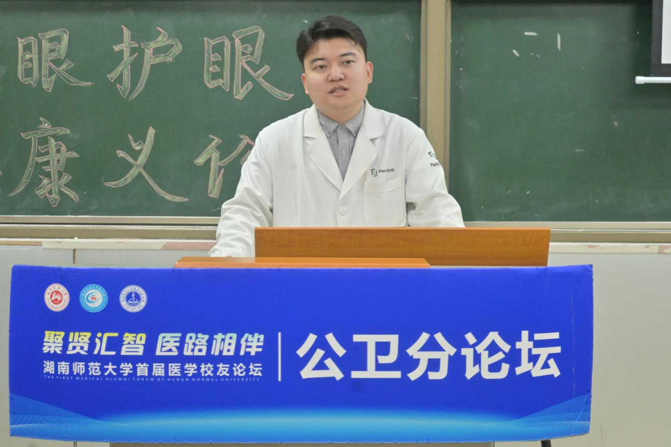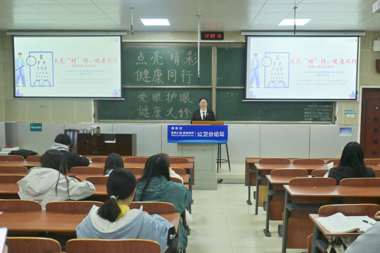 陈实以“眼睛的隐形杀手”为主题,结合大学生近视率超80%的现状,指出近视的主要诱因。他介绍到,视疲劳、干眼症在学生群体中高发,且干眼症难以根治,仅可缓解。同时,陈实讲解了多种科学用眼的实用方法,强调保持充足光线、规范坐姿和每日户外活动的重要性。他提醒高度近视人群需定期检查眼底,避免视网膜裂孔、脱离等风险。并且他介绍了三种视力矫正方式的特点与注意事项。基于此,他提醒同学们科学护眼、规范矫正视力,希望大家拥有一双明亮的眼睛。