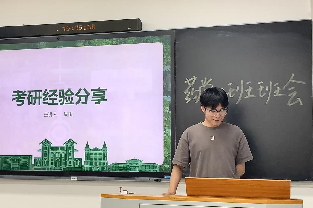 周雨学长结合自身备考经历,从择校定位、科目复习、资源获取、时间管理、身心调节、心态建设六个方面进行细致分享。他强调,药学考研需紧扣目标院校考纲与参考书目,前期夯实英语和专业课基础,中期强化专业课背诵,后期聚焦政治冲刺与全真模拟;复习要坚持重复记忆、以真题为核心,不盲目攀比进度,理性看待差距,发挥自身优势,坚定属于自己的备考节奏。