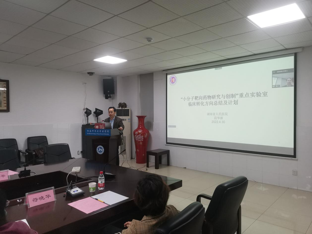 4月30日上午9:30,“小分子靶向药物研究与创制”湖南省重点实验室采取“线上+线下”相结合的方式召开了2021年度学术委员会会议。我校特聘教授、上海交通大学陈丰原教授,国家工程中心主任、南开大学席真教授,国家杰青、北京大学戴志飞教授,国家杰青、中科院昆明动物所陈策实教授,国家杰青、中南大学刘昭前教授及我校符晓华教授出席会议。我校科技处处长马铭、副处长余自娥、校科研平台负责人陶文娜老师莅临线上指导。我校医学院院长何祖平、党委书记鄢朝晖、重点实验室主任杨小平教授及重点实验室骨干成员参加会议。