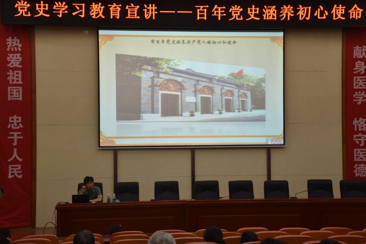 6月17日下午,我院于仁医楼学术报告厅召开了教职工政治理论学习会议。会议由我院党委书记鄢朝晖主持,马克思主义学院党委书记陈红桂做“用百年党史涵养共产党人的初心和使命”主题宣讲。